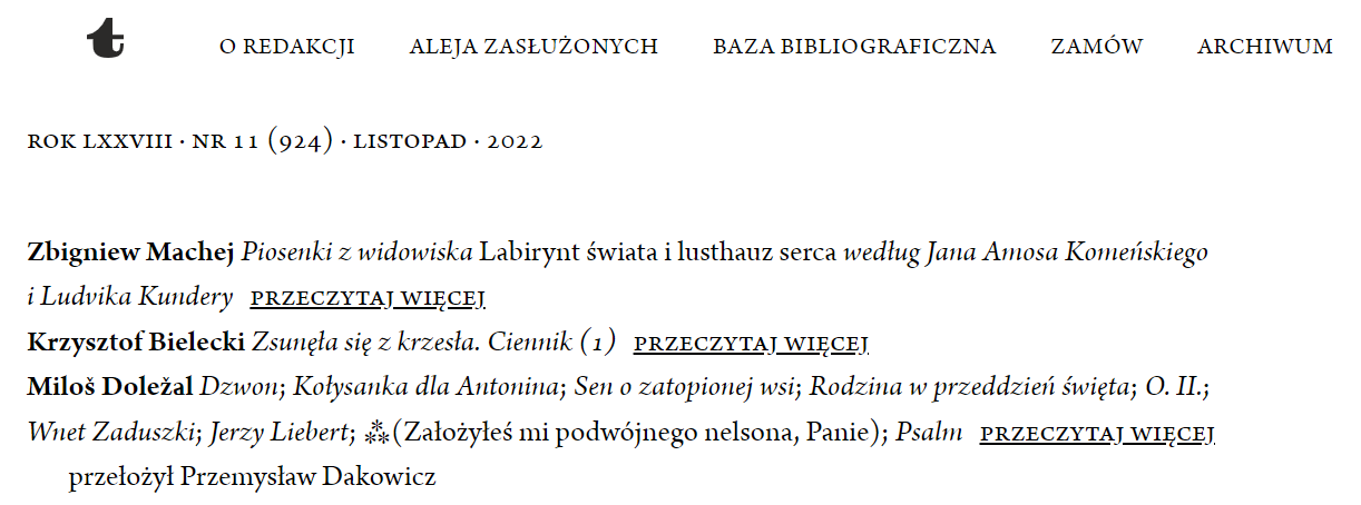 Opowiadanie „Alojzy Szpajza ma się już lepiej” znalazło się w listopadowym numerze miesięcznika „Twórczość”. Tekst można przeczytać w formie papierowej i e-wydania.